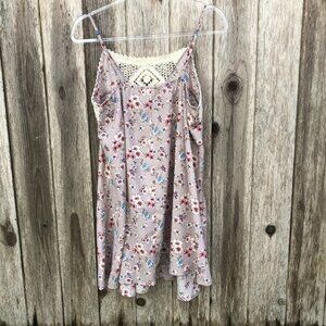 Coverstitched Crochet Lace Floral Sleeveless Mini Dress Large