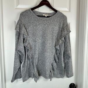 Coverstitched Womens Gray Sweater Sz L Long Sleeve Pullover Ruffled Soft Top U