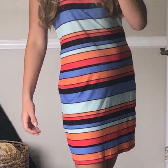 Multi colored striped fitted bathing suit coverup