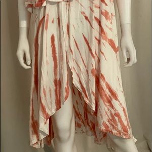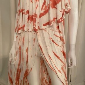 Tie dye strapless cover-up. Can be worn as a midi length cover-up or around the waist as a skirt. Slit opens to reveal a peek at what’s underneath. Very sexy! Rayon/Spandex