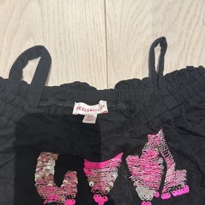 Girls size 3T cover-up dress. Adorable black with COOL on front turns pink and silver when flipped.