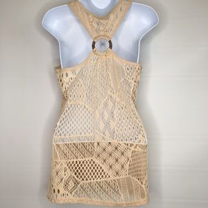 Coverup Racerback Crochet Mesh Tank Tan Small D19