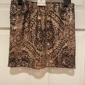 Coveted Clothing Brown Cream Embellished Mini Skirt