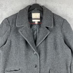 Covington Coat Womens 20-22W Gray Wool Blend Button Front Lined Notch Collar