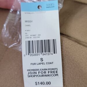 Covington. Contempo Camel Coat with Faux Fur Collar. Size Small. NWT