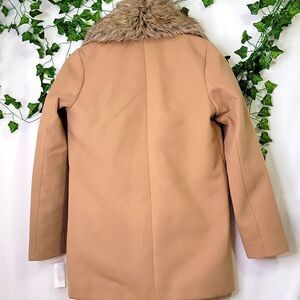 Stylish camel coat with a luxurious faux fur collar. Perfect for a chic look.