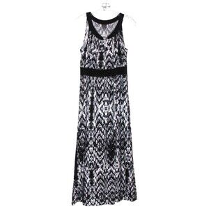 Covington Sleeveless Fit & Flare Dress. Black and white abstract pattern. Pullover with keyhole neckline. Made of a polyester and spandex blend. Machine washable. Very good condition. No rips, tears, holes or stains.