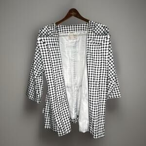 Covington Geometric Print Jacket Black White Snap Belt Wrap Waist Women XL Chic