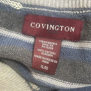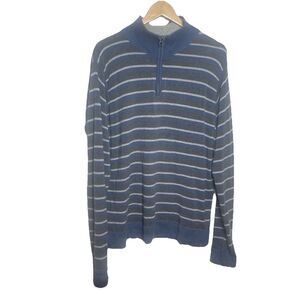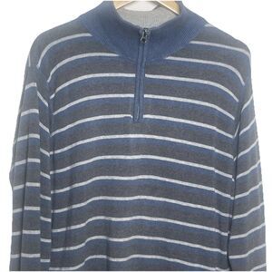 Covington Men’s XL 100% Cotton Striped Quarter Zip Sweater Blue Gray Long Sleeve