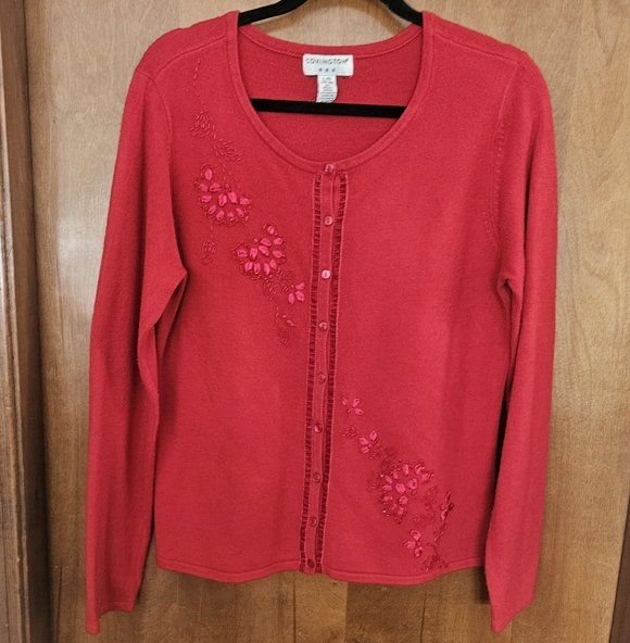 Covington Red Embroidered Button-Front Cardigan