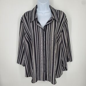 Covington Button Down Blouse Size 22W Womens Black White Striped Shirt