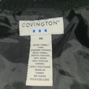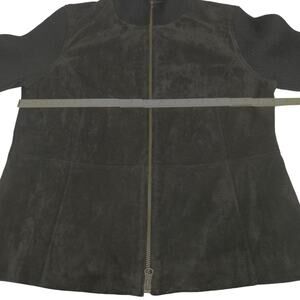 Covington Women Medium Leather Coat Elbow Patches Chocolate Brown Knit Zip Y2K