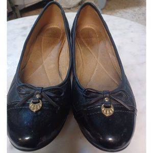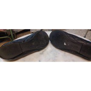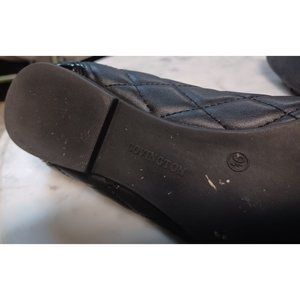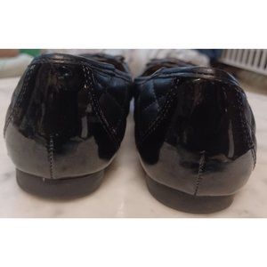 Covington Women's Flat Slip-On Shoes 9.5 Black They have a tiny heel-about 0.5 inches Patent leather toes Rest Man-Made Quilted Bows Gold-Tone Accents