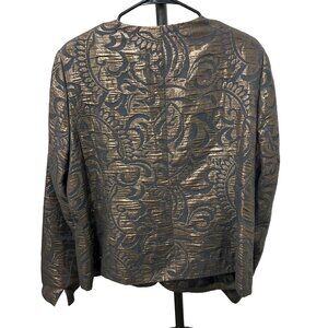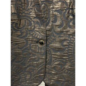 • Tags: Covington jacket, women's jacket, metallic brocade, formal attire, professional wear, single-button, black gold jacket, cotton viscose blend, elegant fashion, stylish outerwear, XL size, textured jacket, women's fashion
