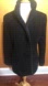 It is fully lined with shoulder pads. It also has two large black buttons for closure and side pockets.
