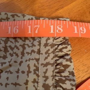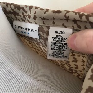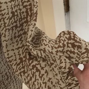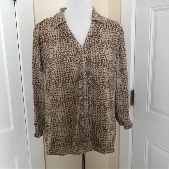 EUC Size XL Covington Tan/brown Ruffle accent on sleeves, collar, and bodice