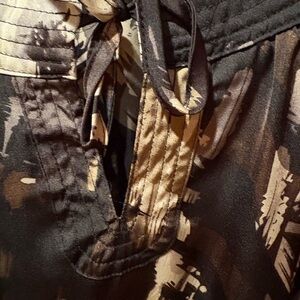 This Covington blouse with a black, white, and gray abstract pattern had a relaxed fit with an abstract pattern with a smocked design. The 3/4 sleeves and gathered neckline add a touch of elegance, while the flowing silhouette ensures comfort and style. Tie neck, elastic waist, elastic sleeves. Good condition. See measurements to insure that this blouse will be the correct fit for you.