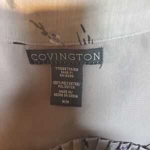 Covington Gray & Purple Floral Tank Top is a sleeveless blouse made of lightweight and breathable polyester material. It has a scoop neck and wide straps with pleated accents. The blouse is perfect for casual, workwear, or business occasions during summer and spring. The colorful floral pattern and the flower theme make it a basic yet stylish addition to any wardrobe. The blouse is available in size M and was made in China.