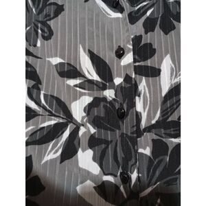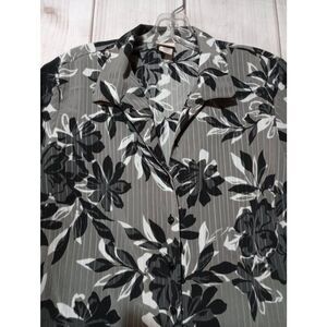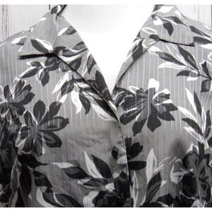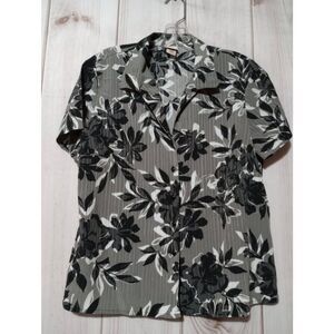 Covington Shirt Ladies Large Petite Button Front Short Sleeve Gray Black Floral