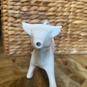 An adorable and cute vintage creamer in the shape of a cow with the tail is the handle and the spout is where the cream would pour out. An excellent condition no chips or cracks. Made in France as seen on the bottom. These refer to pictures for current condition and measurements