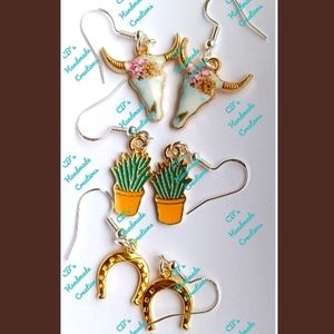 Hypoallergenic Hooks Floral cow skull, cactus and horseshoe earrings!