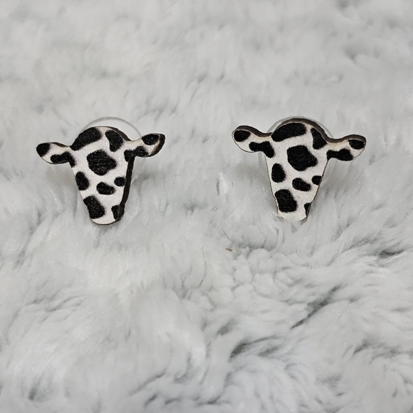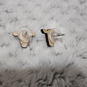 Adorable cow stud earrings made from wood, so may have a wood smell, comes with rubber backings.