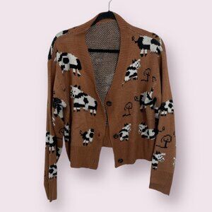 ⭐️ Cow Hipster Hippie Art Artsy Fun Party Plant Coquette Picnic Cardigan Sweater