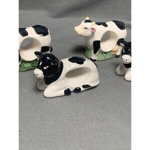 Cow Napkin Holder Ring Set of 4 Ceramic Vintage Farmhouse Decor