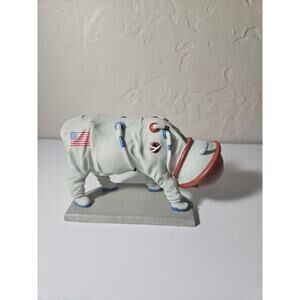 Theme: The figurine depicts a cow in an astronaut suit, paying homage to the NASA space missions, complete with a U.S. flag detail. A life-size version of a similar design is a popular permanent art installation at the Houston Airport.