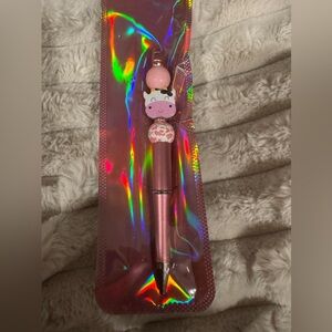 Cute handmade pink pen with cow and bead design. Perfect for adding fun to your writing and for all the cow lovers.