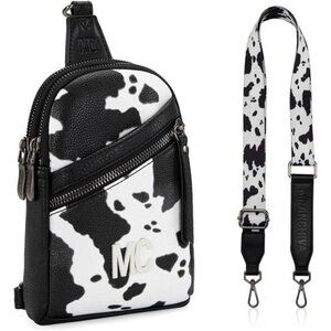 Cow Print Crossbody Mini Bag with Adjustable Strap and Zipper Pockets