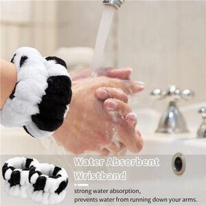 Cow Print Fuzzy Headband & Wristband Set – Cute Horned Spa Hair Band for Women