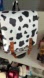 Stylish cow print backpack with brown accents. Perfect for everyday use.