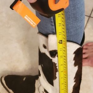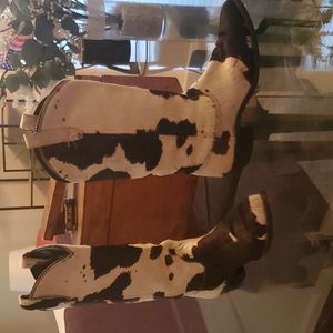 Cow Town 1987 Cow hide Hair On Boots 1.5 inch heel. 12" shaft height.