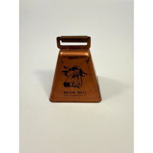 This vintage Bevin Bell cowbell from East Hampton, CT, features a charming cow design and a rich copper finish. An enduring piece of history, this bell reflects nostalgic craftsmanship, ideal for collectors or as a decorative item.