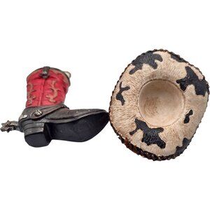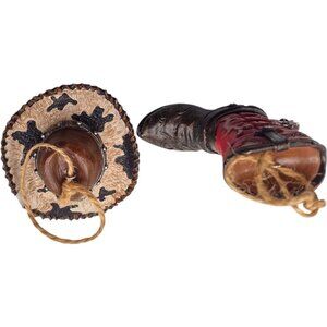 Cowboy Boot & Cowhide Hat Ornament Set Rustic Western Christmas Gift 3" Resin