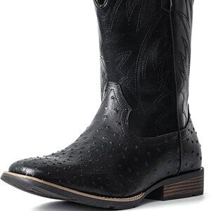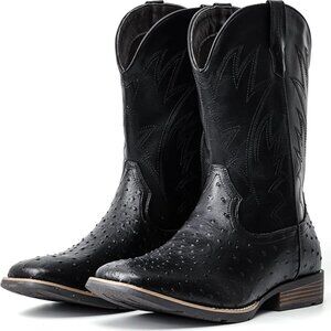 【Stylish Ostrich-Embossed Design】: Elevate your look with the rugged charm of classic cowboy boots, featuring a premium synthetic leather texture that mimics real ostrich skin. The intricate embossing adds a touch of luxury, while the sleek silhouette ensures versatility for jeans, chinos, or casual outfits—perfect for nights out, rodeos, or everyday wear.