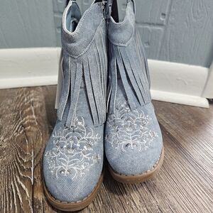 Cowboy Boots Kids Sz 11 Blue Denim With Fringe By Pawz