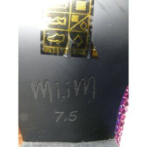 These stunning Mi.iM women cowboy boots are adorned with fuchsia rhinestones and straps, perfect for making a bold statement at any event. Crafted for style and comfort, these size 7.5 - 8 boots are a must-have for fashion enthusiasts seeking a unique touch to their wardrobe.
