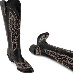 Features: These stylish cowboy boots feature intricate embroidery and a sleek pointed toe, combined with a comfy 2-inch chunky heel. The side zipper makes them super easy to slip on and off, while the pull-on style keeps things simple and chic. Crafted from durable PU that feels soft yet resilient, perfect for everyday wear or dressing up for a night out.