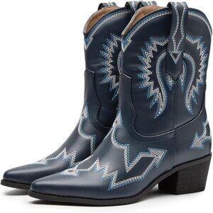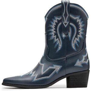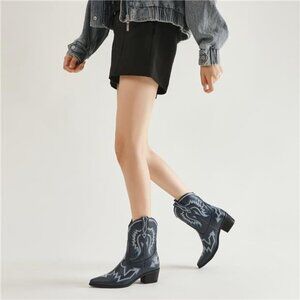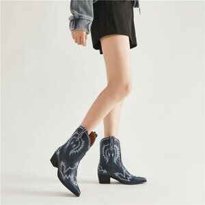 Cowboy Boots for Women Embroidered Metallic Ankle Western Cowgirl Boots Pointed
