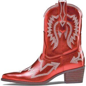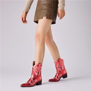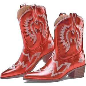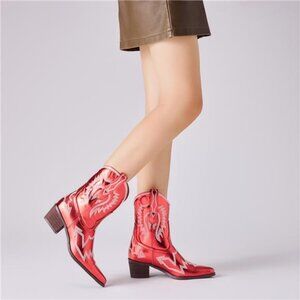 Cowboy Boots for Women Embroidered Metallic Ankle Western Cowgirl Boots Pointed