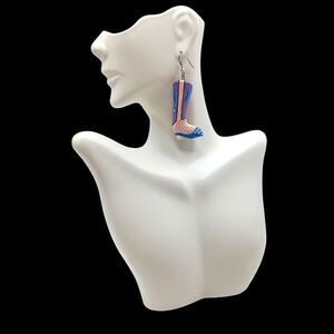 Cowboy Cowgirl Boot Earrings Wood Handpainted Dangle Rodeo Colorful Paper Mache