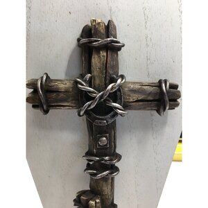 Cowboy Crucifix Western Wasll Cross Rustic Barbwire Horseshoe Rodeo Farmhouse
