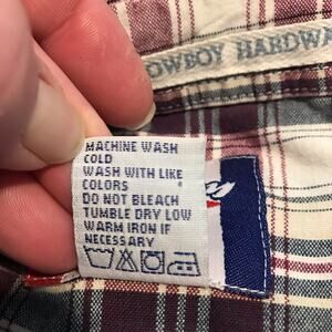 Cowboy Hardware Burgundy Blue White Plaid Western Button Down Shirt