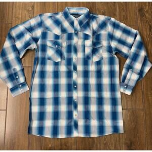 Cowboy Hardware Hombre Plaid Print Long Sleeve Pearl Snap Western Shirt - Large