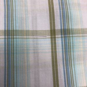 Cowboy Hardware short sleeve western shirt. Size medium. White with green, turquoise, yellow, and blue plaid. Brown faux tortoise shell buttons. Upper left chest pocket. Good preowned condition! Back has two snags and what appears to be a factory thick stitch. Very light and barely noticeable. Perfect light shirt for summer!
