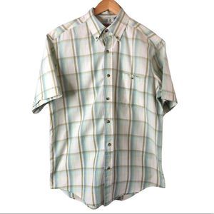 Cowboy Hardware Plaid White Green Short Sleeve Shirt sz M