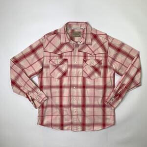 Cowboy Hardware Shirt Mens L Cotton Pearl Snap Buttons Plaid Long Sleeve Western