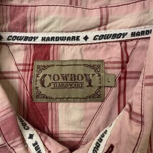 COWBOY HARDWARE SHIRT MENS L COTTON PEARL SNAP BUTTONS PLAID LONG SLEEVE WESTERN